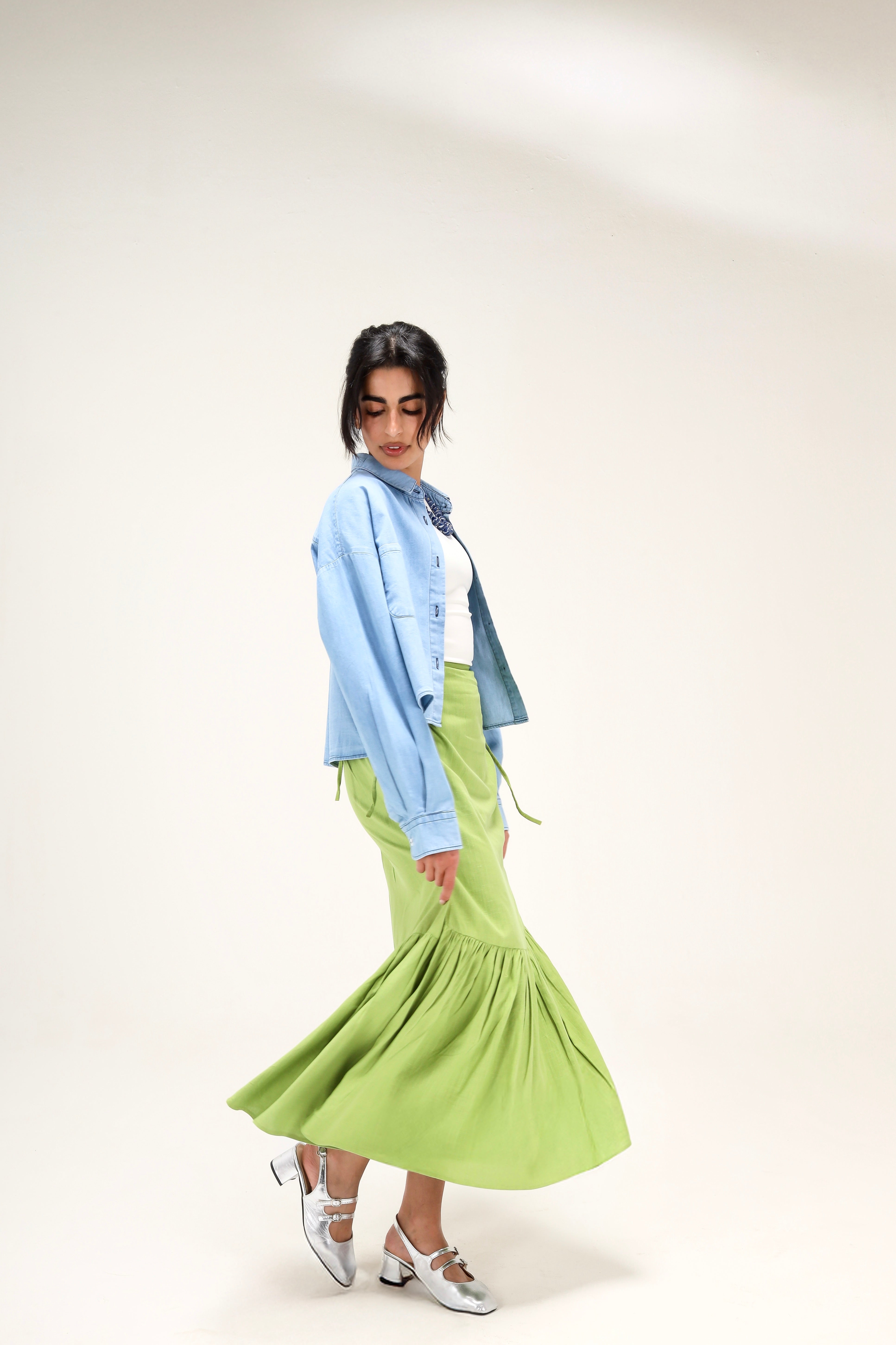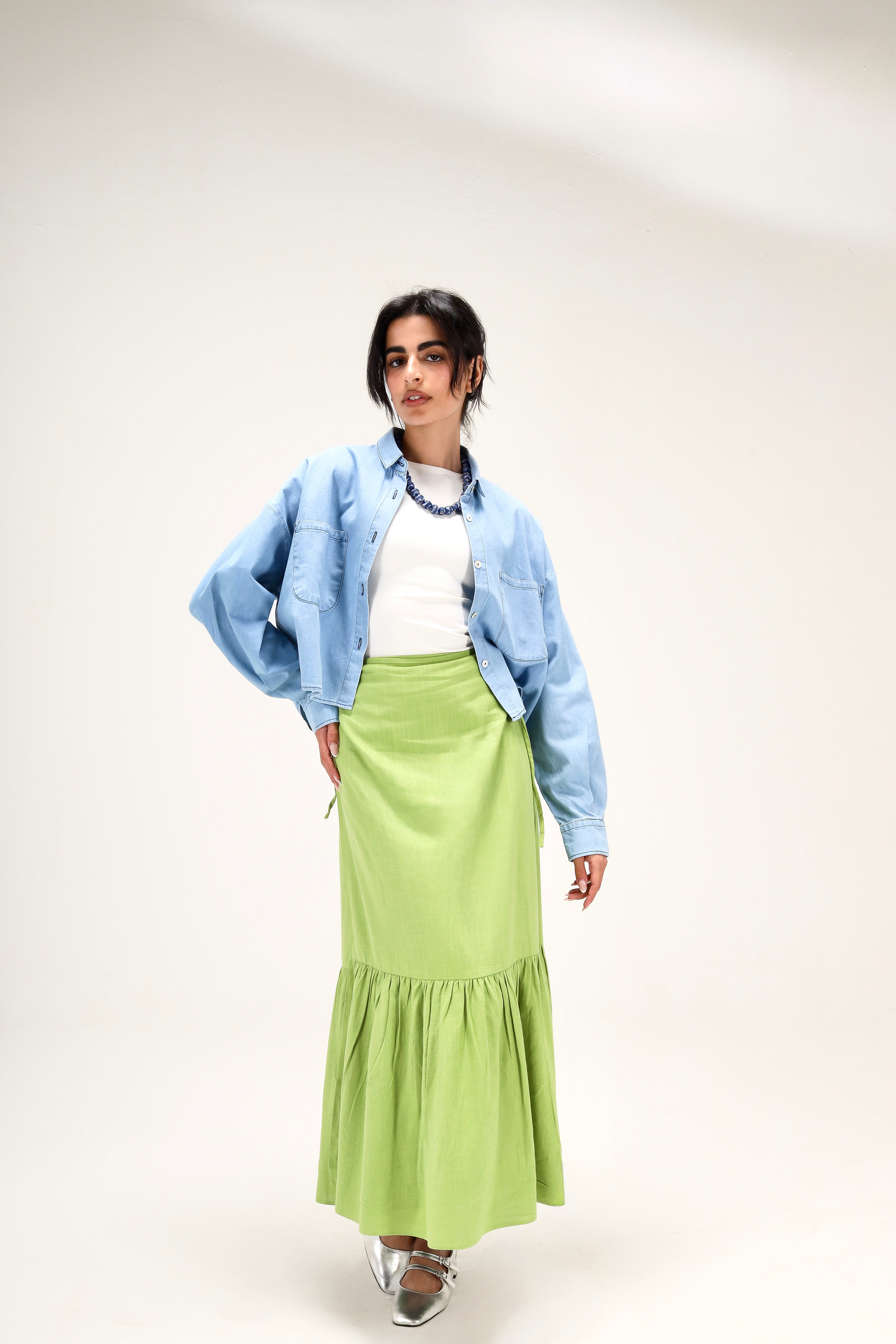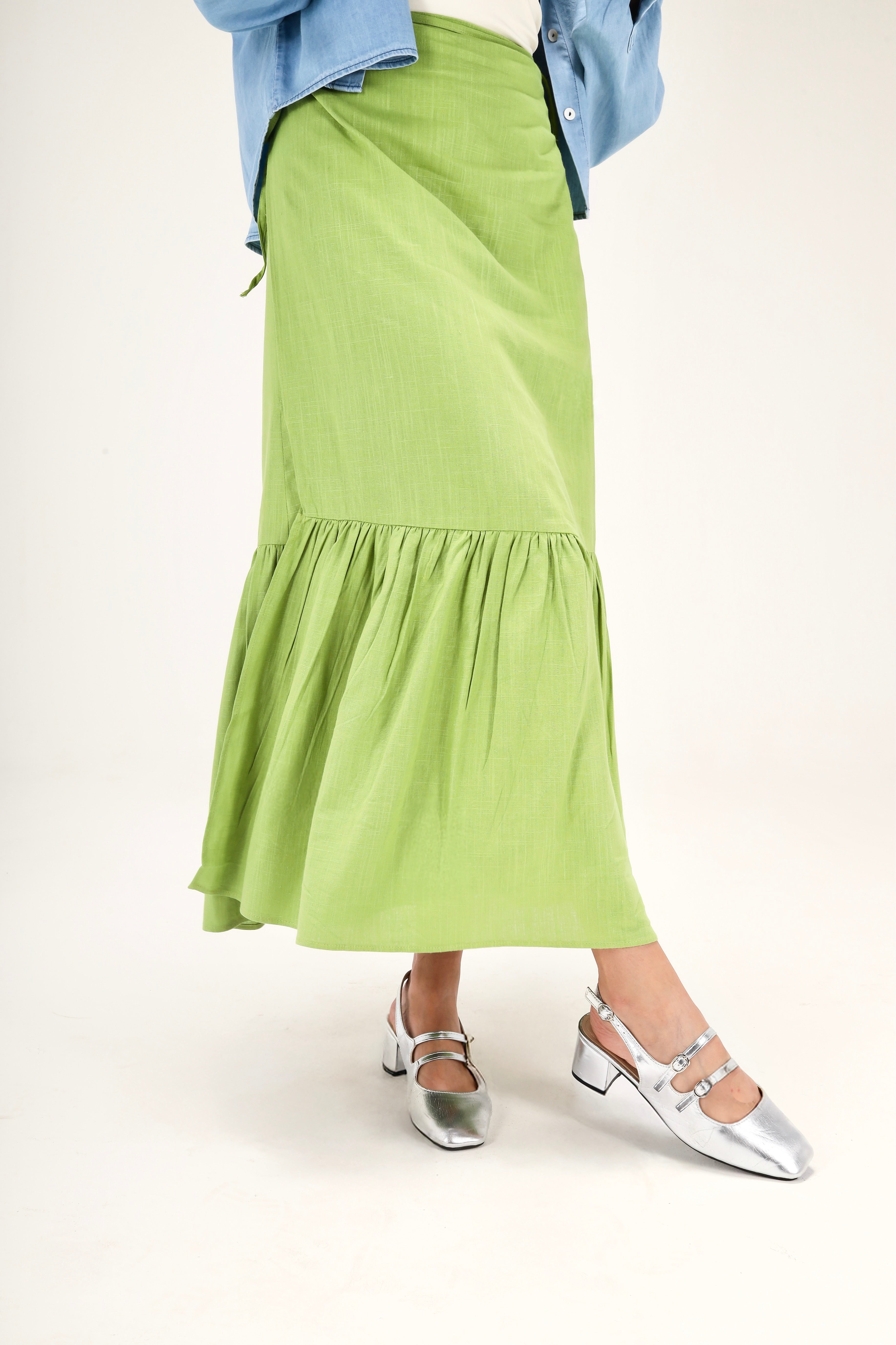 • Wrap-Me-Up Linen Skirt in Forest Green