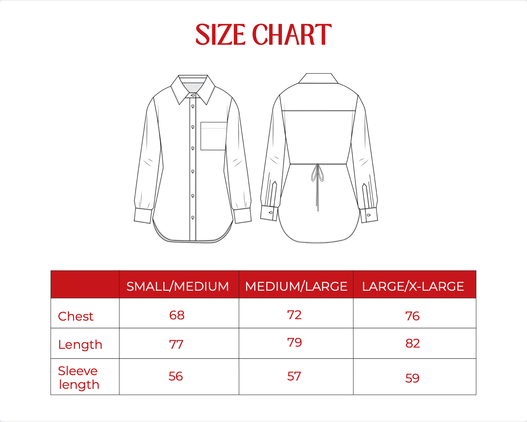 Classic button-up shirt with pointed collar, long sleeves with buttoned cuffs, detachable belt for a cinched waist